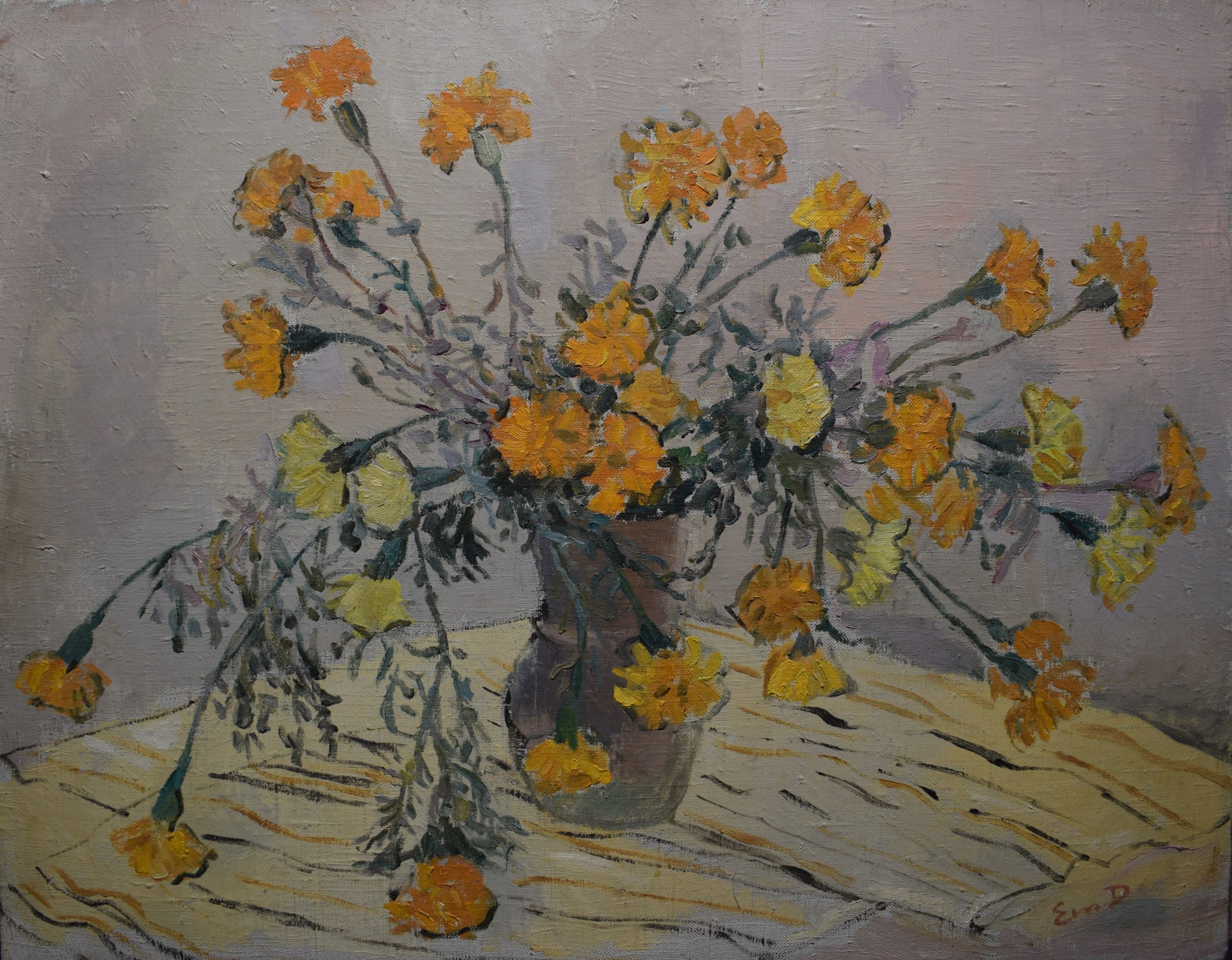 2. Flori | nedatat (1965 – 1975) | ulei pe pânză | Muzeul Brăilei „Carol I”.
