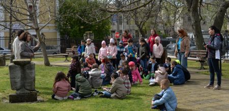 Grup de la de la Fundația „Surorile Clarice”, însoțit de prof. înv. primar Angi Stoian și prof. înv. primar Florin Matei. FOTO: Marian Scăpău.
