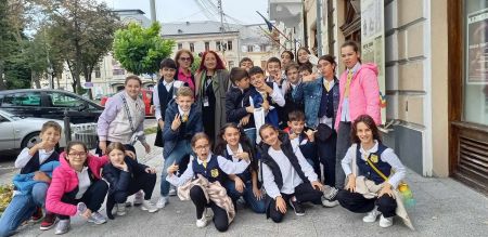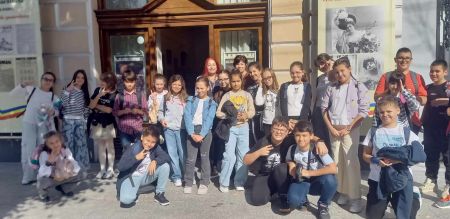 Grup de la Școala Gimnazială „Fănuș Neagu”, însoțit de prof. înv. primar Angelica Șușu. Camelia Hristian, șef Serviciul Relații cu Publicul a prezentat expoziț...