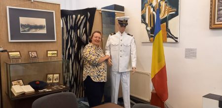 În imagine: Căpitan de Port Superior Anghel Georgian, colecționar și Florentina Cristina Mușat Constantin, membră a Comunității Elene Brăila. La sediul Comandamentului Flo...