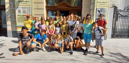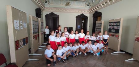Grup de copii și părinți, însoțit de prof. Cornelia Miler. Camelia Hristian, șef Serviciul Relații cu Publicul a prezentat expozițiile temporare OBIECTE din sec. XIX de la Biser...