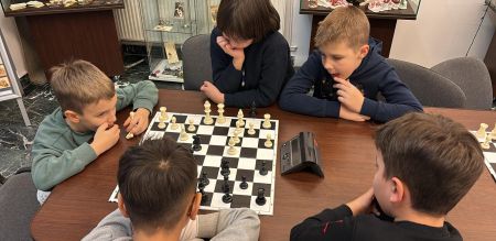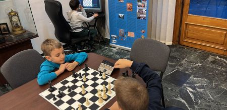 Șah (patru întâlniri) cu Iulian Preda, președinte și Cosmin Dobrescu, instructor de la Clubul Sportiv „Micul Prinț” Brăila, la Muzeul Brăilei „Carol I&rdq...