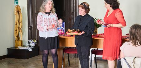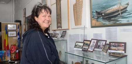 Vizitatoare din Canada - Geraldine Carroll, fiica lui Nicăpetre, la Muzeul Brăilei „Carol I” - Centrul Diversității Culturale. Camelia Hristian, șef Serviciul Relații cu Pu...