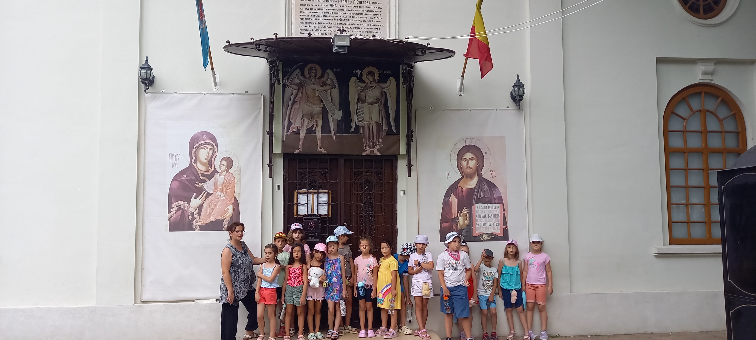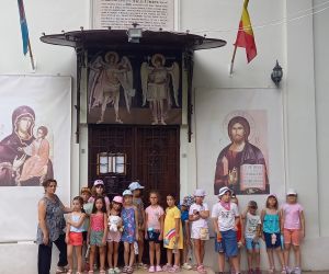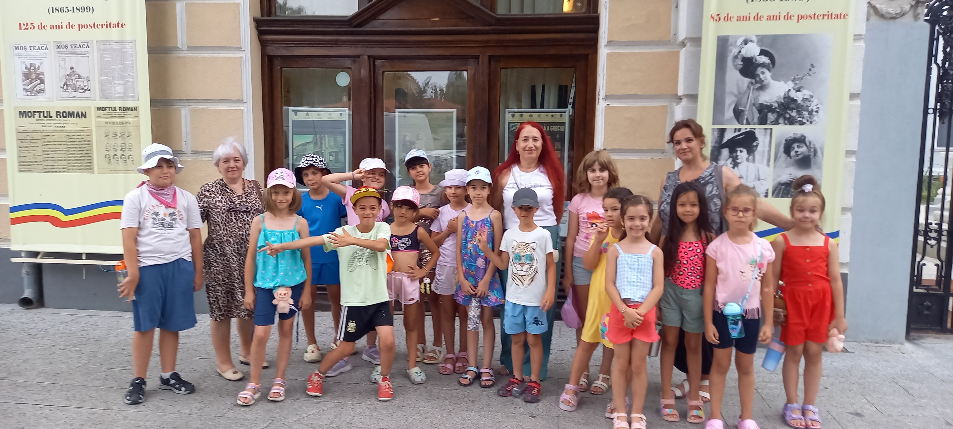 Grup de elevi de la Liceul de Arte „Hariclea Darclée”, Școala Gimnazială „Ion Creangă” și Școala Gimnazială „Fănuș Neagu”, însoțit de prof. înv. primar Mădălina Done Calomeiț.