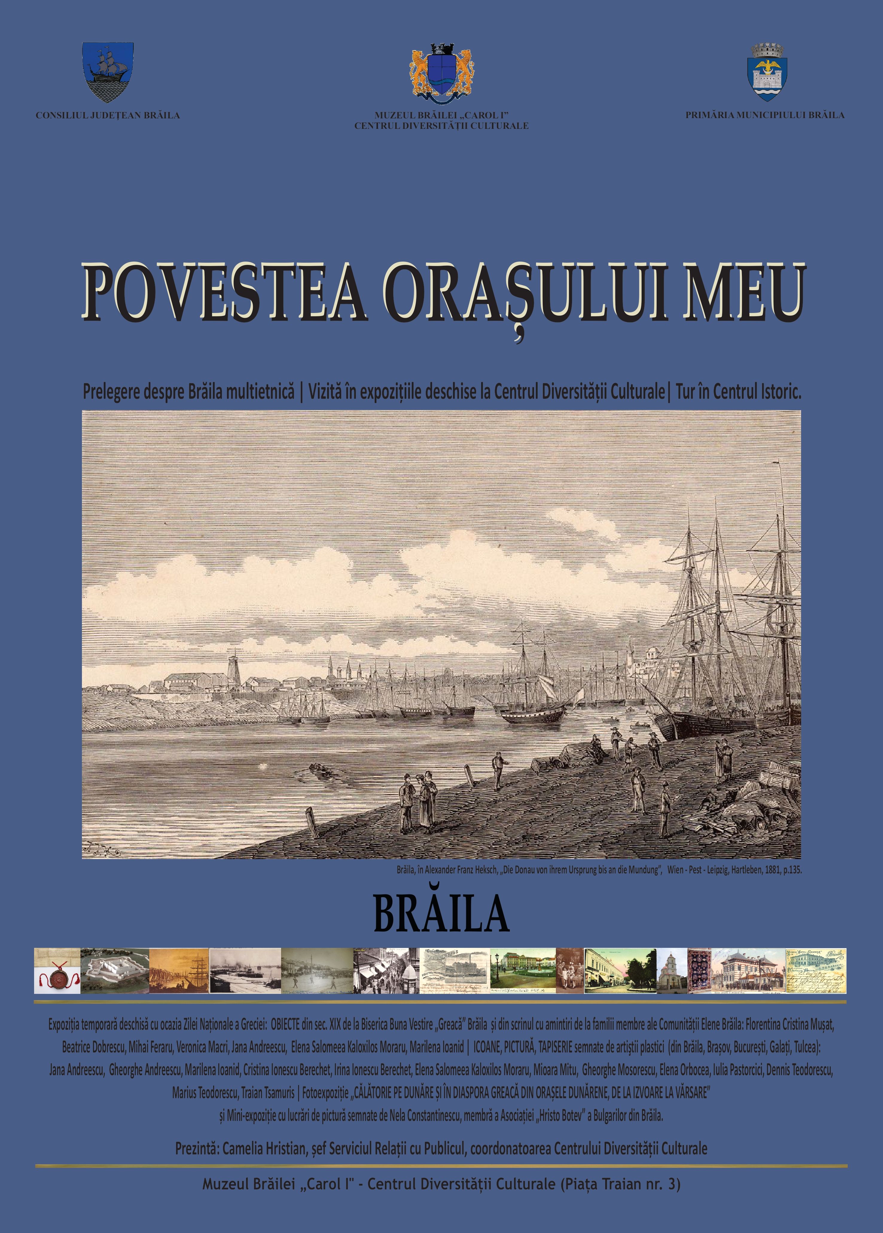 Expoziția temporară deschisă cu ocazia Zilei Naționale a Greciei: OBIECTE din sec. XIX de la Biserica Buna Vestire „Greacă” Brăila și din scrinul cu amintiri de la familii membre ale Comunității Elene Brăila: Florentina Cristina Mușat, Beatrice Dobrescu, Mihai Feraru, Veronica Macri, Jana Andreescu, Elena Salomeea Kaloxilos Moraru, Marilena Ioanid | ICOANE, PICTURĂ, TAPISERIE semnate de artiştii plastici (din Brăila, Brașov, București, Galați, Tulcea): Jana Andreescu, Gheorghe Andreescu, Marilena Ioanid, Cristina Ionescu Berechet, Irina Ionescu Berechet, Elena Salomeea Kaloxilos Moraru, Mioara Mitu, Gheorghe Mosorescu, Elena Orbocea, Iulia Pastorcici, Dennis Teodorescu, Marius Teodorescu, Traian Tsamuris | Fotoexpoziție „CĂLĂTORIE PE DUNĂRE ȘI ÎN DIASPORA GREACĂ DIN ORAȘELE DUNĂRENE, DE LA IZVOARE LA VĂRSARE” și Mini-expoziție cu lucrări de pictură semnate de Nela Constantinescu, membră a Asociației „Hristo Botev” a Bulgarilor din Brăila și Paul Petrov, membru al Comunității Rușilor Lipoveni Brăila, la Muzeul Brăilei „Carol I” - Centrul Diversității Culturale.
