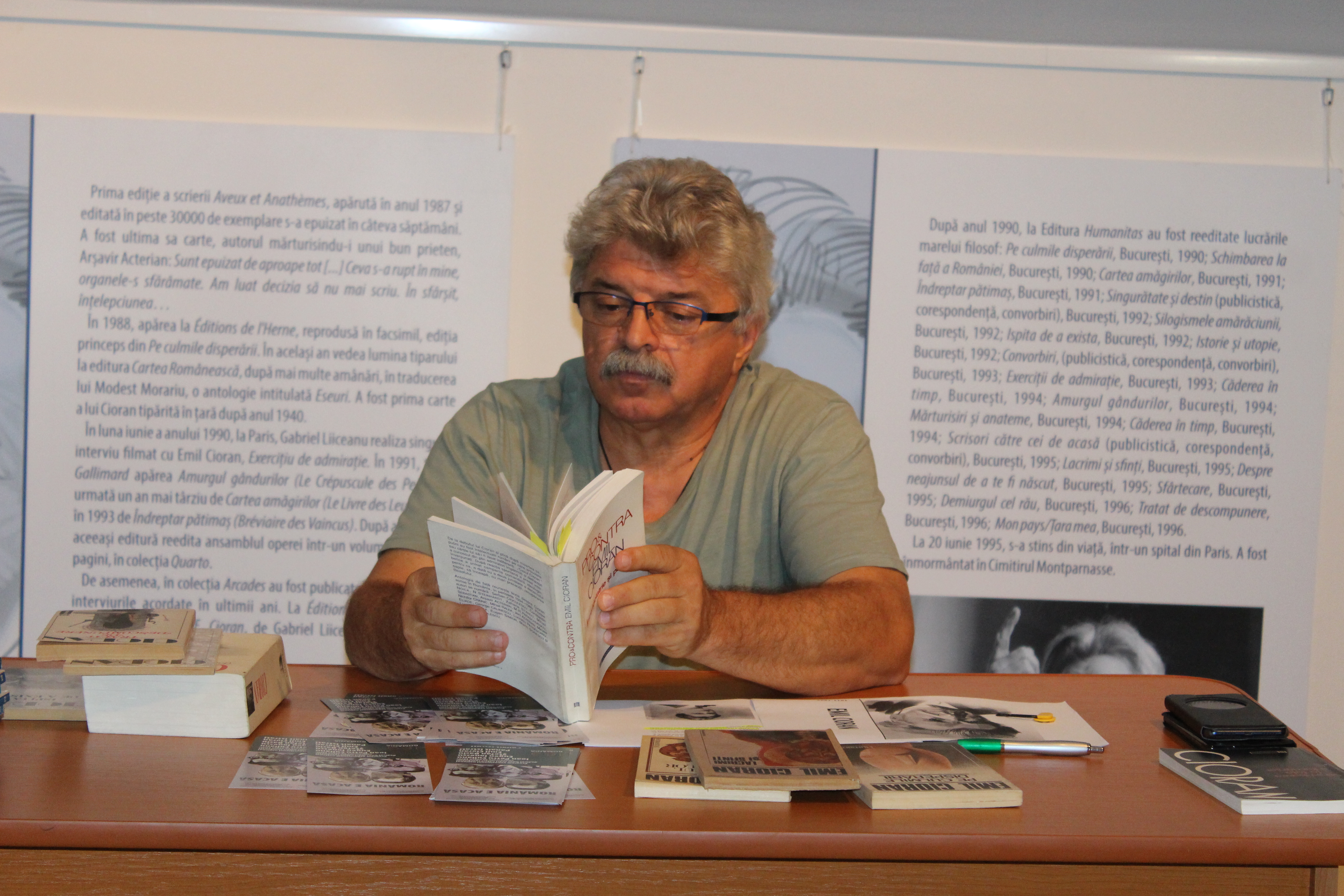 Activitatea este inclusă în proiectul cultural „ROMÂNIA E ACASĂ. Program expozițional național dedicat unor mari valori românești consacrate în afara țării: Ioan Petru Culianu, Eugen Ionescu, Ștefan Baciu, Emil Cioran, Panait Istrati”, în contextul Centenarului României Mari. Proiectul este implementat de Muzeul „Casa Mureșenilor” Brașov cu finanțare din partea Administrației Fondului Cultural Național și cu sprijinul partenerilor săi: Biblioteca Județeană Astra Sibiu, Muzeul Brăilei „Carol I”, Complexul Muzeal Național Moldova Iași, Muzeul Județean Olt, Muzeul Național al Unirii Alba-Iulia.