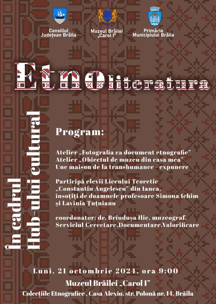 Luni, 21 octombrie, ora 9:00, se va desfășura o nouă activitate în cadrul Hub-ului cultural „Etnoliteratura”, la Casa Alexiu/Colecțiile Etnografice ale Muzeului Brăilei „Carol I”.