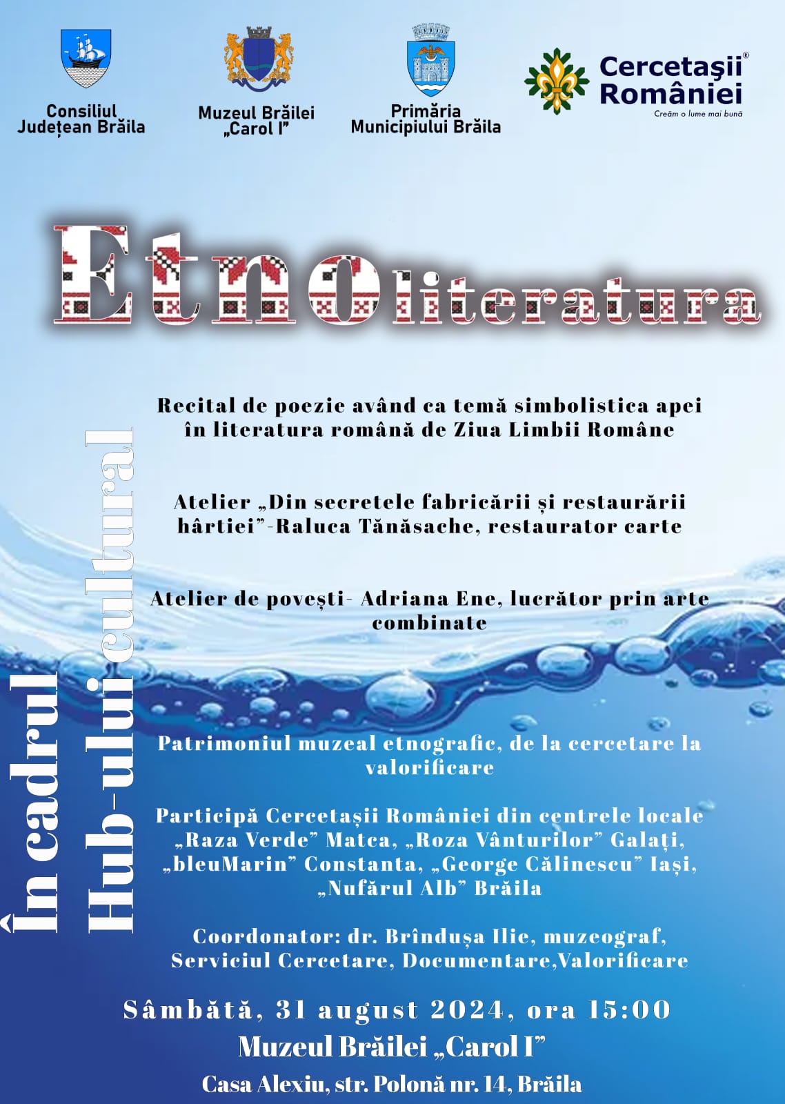 Sâmbătă, 31 august, ora 15:00, vă invităm la Casa Alexiu (Str. Polonă, nr. 14) pentru o nouă activitate din cadrul Hub-ului cultural „Etnoliteratura”.