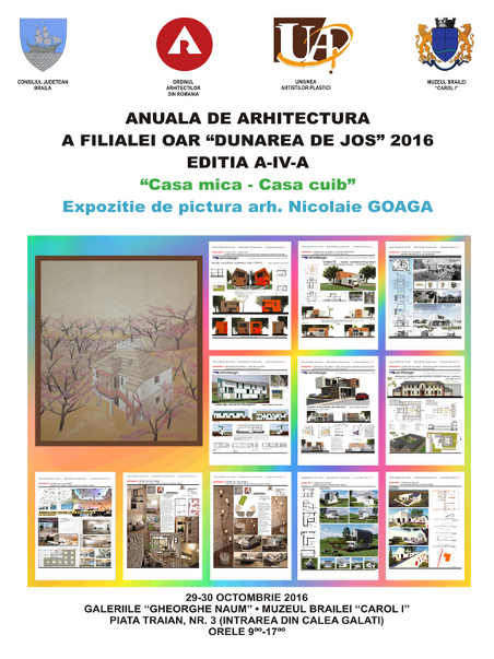 ANUALA DE ARHITECTURĂ a Filialei OAR „Dunărea de Jos" 2016, ediţia a IV-a. „CASA MICĂ - CASA CUIB". Expoziţie de pictură arh. NICOLAIE GOAGĂ - la Muzeul Brăilei „Carol I” - Galeria de Artă „Gheorghe Naum"