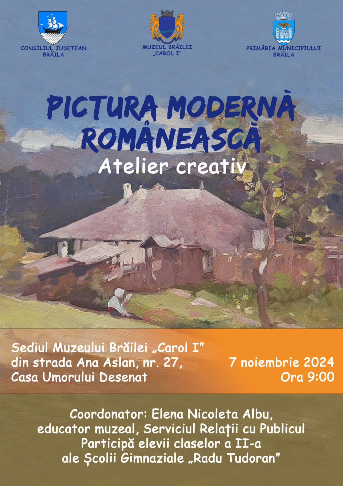 Atelier creativ „Pictura modernă românească” - joi, 7 noiembrie 2024, ora 9.00, la Muzeul Brăilei „Carol I” - Casa Umorului Desenat (str. Ana Aslan nr. 27)