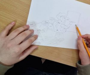 Atelierul „Lumini și umbre retușate”, coordonat de Elena Albu, educator muzeal în cadrul Secției Artă a Muzeului Brăilei „Carol I”, a prezentat lucrări aflate în patrimoniul muzeului, pentru a pune în valoare actul artistic și a provoca elevii claselor a VII-a A și a VII-a B, îndrumați de prof. Camelia Costin și prof. Iulia Gheoca, la un joc de sensuri pe care fiecare le-a exprimat prin desen.