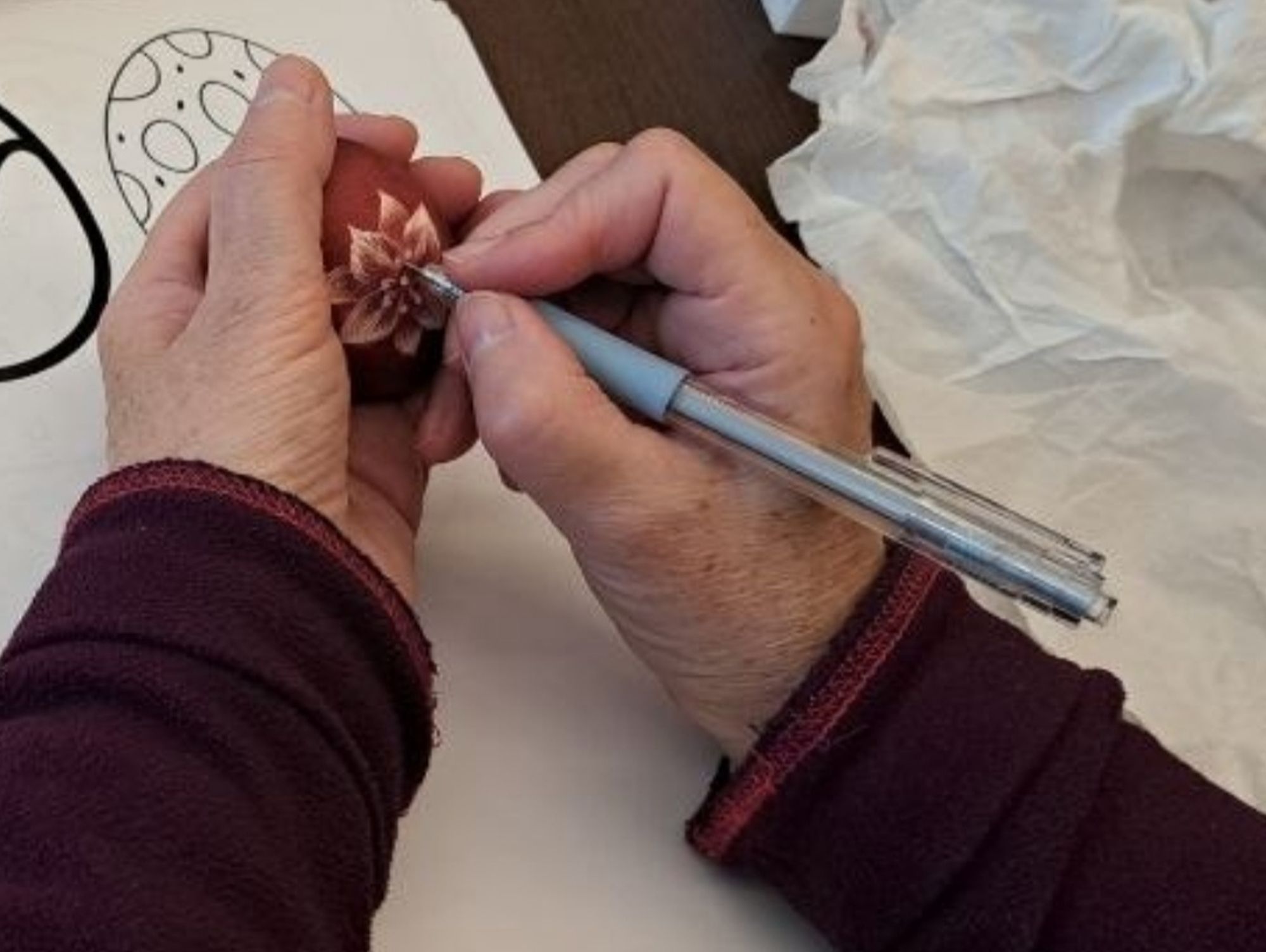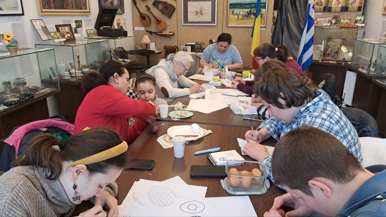 Atelier de încondeiere ouă (I), în cadrul Proiectului cultural pentru sprijinirea refugiaților ucraineni - Curs de limba română cu prof. Nina Brajenco (Ucraina) și Povești despre Brăila, la Muzeul Brăilei „Carol I” - Centrul Diversității Culturale.