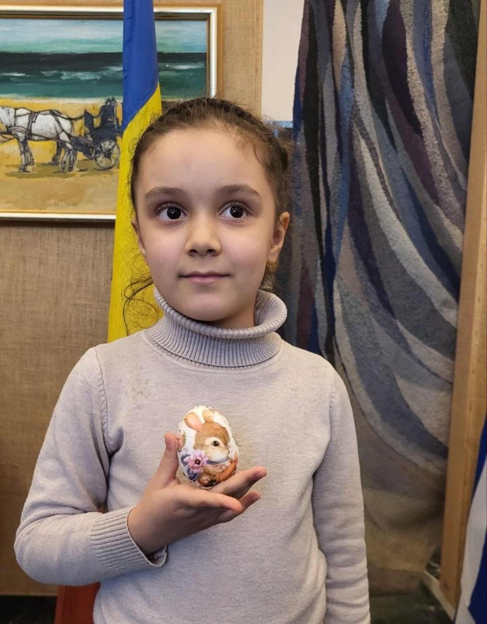 „Astăzi au fost prezentate două dintre tehnicile folorite de Paști în Ucraina: screabanka - ouăle de Paști cu modele realizate prin tehnica zgârierii (încondeierea cu ceară sau gravarea) reprezintă o tradiție veche în Ucraina. După ce oul a fost vopsit într-o singură culoare, se folosește un instrument ascuțit (ac, lamă sau un vârf metalic) pentru a zgâria suprafața cojii, dezvăluind culoarea albă a oului și creând modele geometrice sau florale. Este unul dintre cele patru tipuri tradiționale, alături de pysanka, krashanka și krapanka, care vor fi prezentate în atelierul următor. În două dintre fotografii este prezentat și un ou decorat prin tehnica decupaj.” (prof. Nina Brajenco).