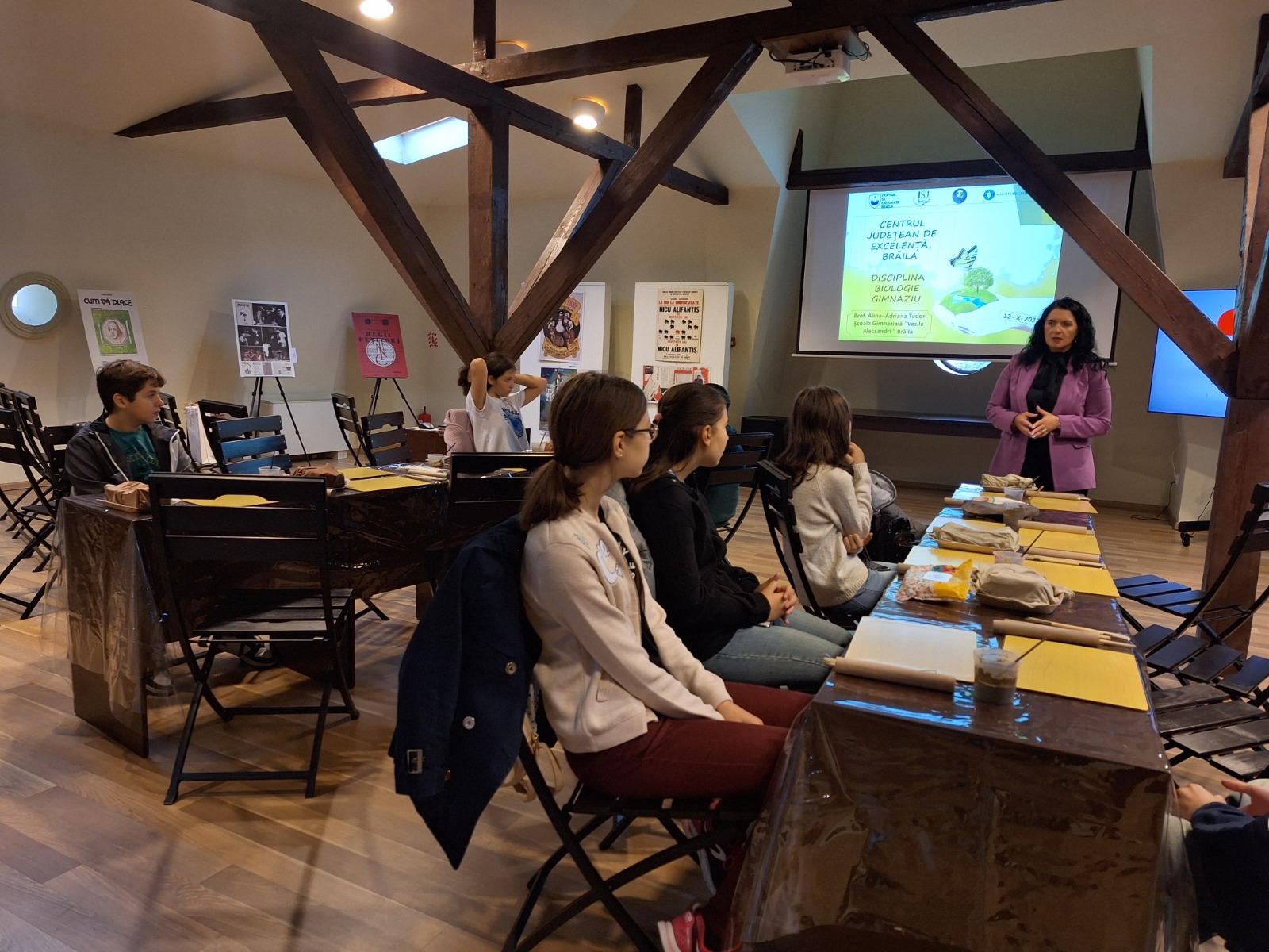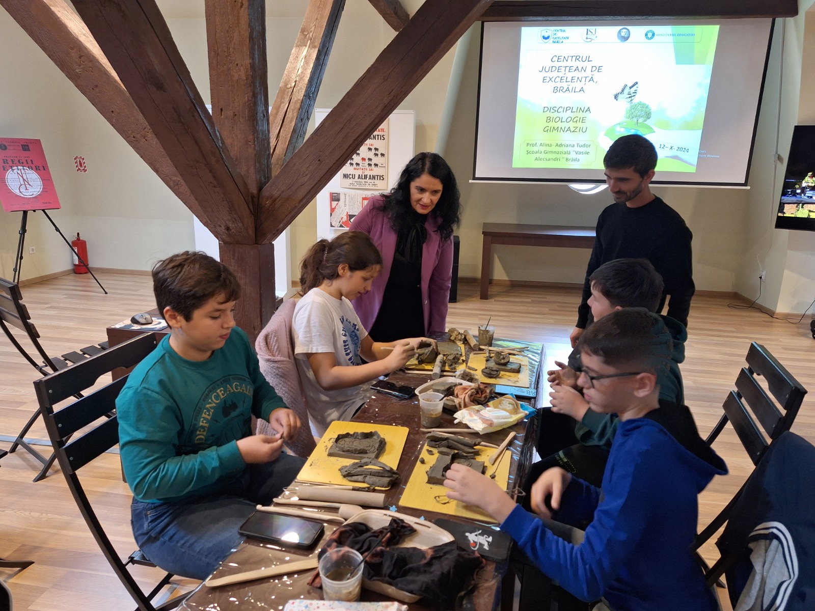 Astăzi am avut bucuria să fim gazde elevilor pasionați de biologie, pe care doamna profesor Alina Tudor, director al Școlii Gimnaziale „Vasile Alecsandri”, îi coordonează în cadrul Centrului Județean de Excelență al Brăilei. Prezentarea provocărilor care îi așteaptă pe elevi în următorul an, le-a deschis apetitul pentru noi experiențe. Astfel, la mansarda Casei Umorului Desenat, locul care transformă activitățile de educație muzeală în magie, tinerii s-au bucurat de experimentarea unor noi metode de învățare, practice, creative, modelând în lut diverse tipuri de celule. Atelierul a fost organizat de Elena Albu, educator muzeal - Serviciul Relații cu Publicul și Cristian Lalu, conservator - Serviciul Evidența și Protejarea Patrimoniului (Colecția Științele Naturii)