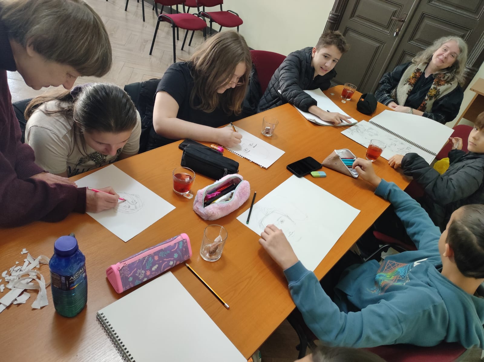 Atelier de grafică coordonat de prof. Marilena Ioanid, artist plastic. Au participat elevi de la Liceul de Arte „Hariclea Darclée”.