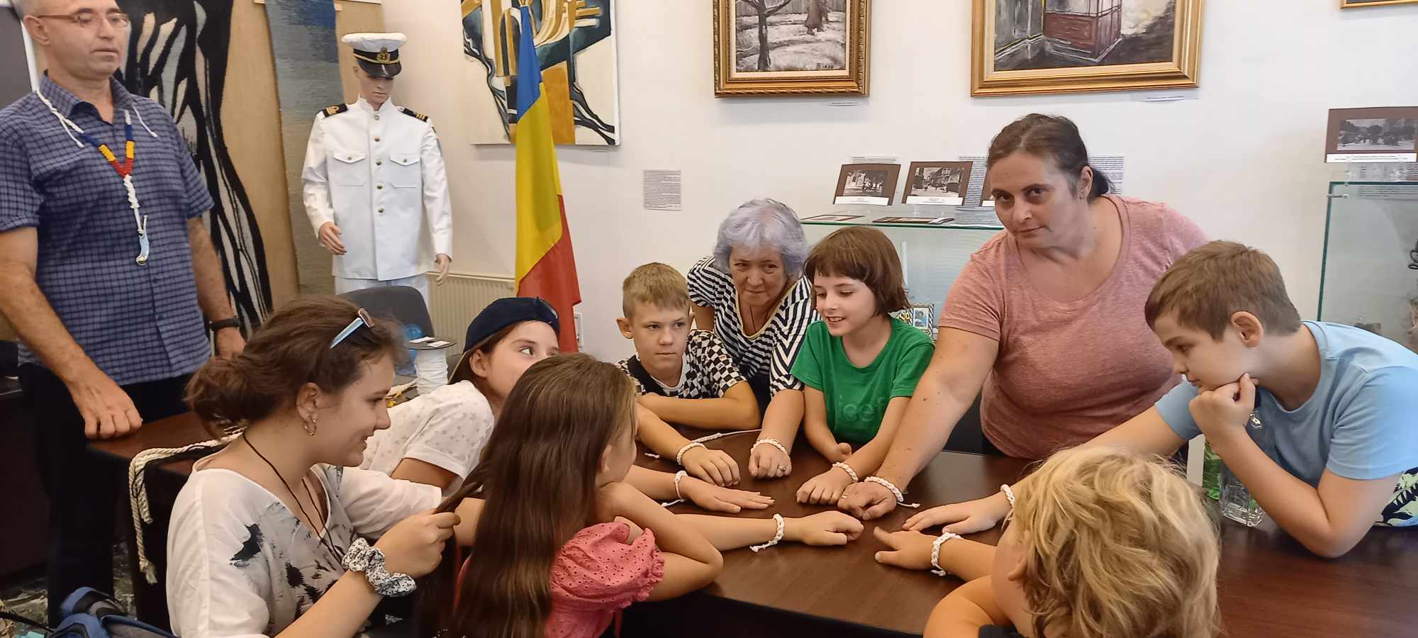 Participanții, copii și adulți, au vizitat și expozițiile temporare „POVEȘTI MARINĂREȘTI” – organizată cu ocazia Zilelor Brăilei și Zilei Marinei – FOTOGRAFII și DOCUMENTE de la fam. Florentina Cristina Musat Constantin (Comunitatea Elenă Brăila), OBIECTE din Sala de Tradiții Militare a Flotilei Fluviale „Mihail Kogălniceanu” Brăila, noduri și accesorii marinărești realizate de Costel Mândroiu și OBIECTE din sec. XIX de la Biserica Buna Vestire „Greacă” Brăila și din scrinul cu amintiri de la familii membre ale Comunității Elene Brăila: Beatrice Dobrescu (Ispir), Florentina Mușat, Elena Salomeea Kaloxilos Moraru, Jana Andreescu, Marilena Ioanid | LUCRĂRI DE ARTĂ semnate de artiştii plastici (din Brăila, Galați, Brașov și București): Jana Andreescu, Gheorghe Andreescu, Irina Ariton, Marilena Ioanid, Irina Ionescu Berechet, Elena Salomeea Kaloxilos Moraru, Gheorghe Mosorescu, Iulia Pastorcici, Dennis Teodorescu, Marius Teodorescu, Traian Tsamuris | FOTOEXPOZIȚIE „INCURSIUNE ÎN VESTIMENTAȚIA GREACĂ, ÎN SEC. XVI - XX” - deschisă cu ocazia Zilei Naționale a Greciei. A prezentat: Camelia Hristian, șef Serviciul Relații cu Publicul.