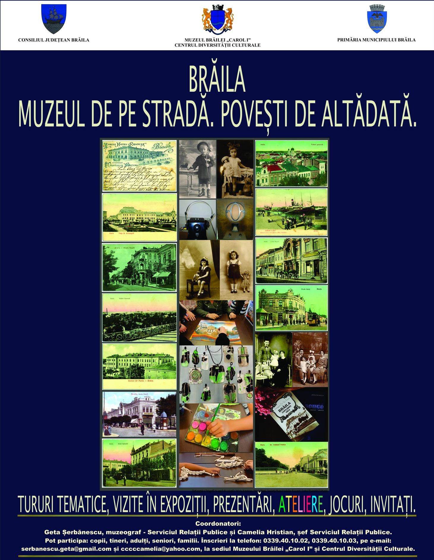 „BRĂILA. MUZEUL DE PE STRADĂ. POVEȘTI DE ALTĂDATĂ". Tur în Centrul Istoric și vizită în expoziții, la Teatrul „Maria Filotti", Muzeul Brăilei „Carol I” - Centrul Diversității Culturale, Centrul Cultural Nicăpetre, sediu - Colecțiile Arheologie, Istorie, Centrul Memorial „Nae Ionescu, Vasile Băncilă, Anton Dumitriu, Ana Aslan, Edmond Nicolau, Valeriu Dinu”