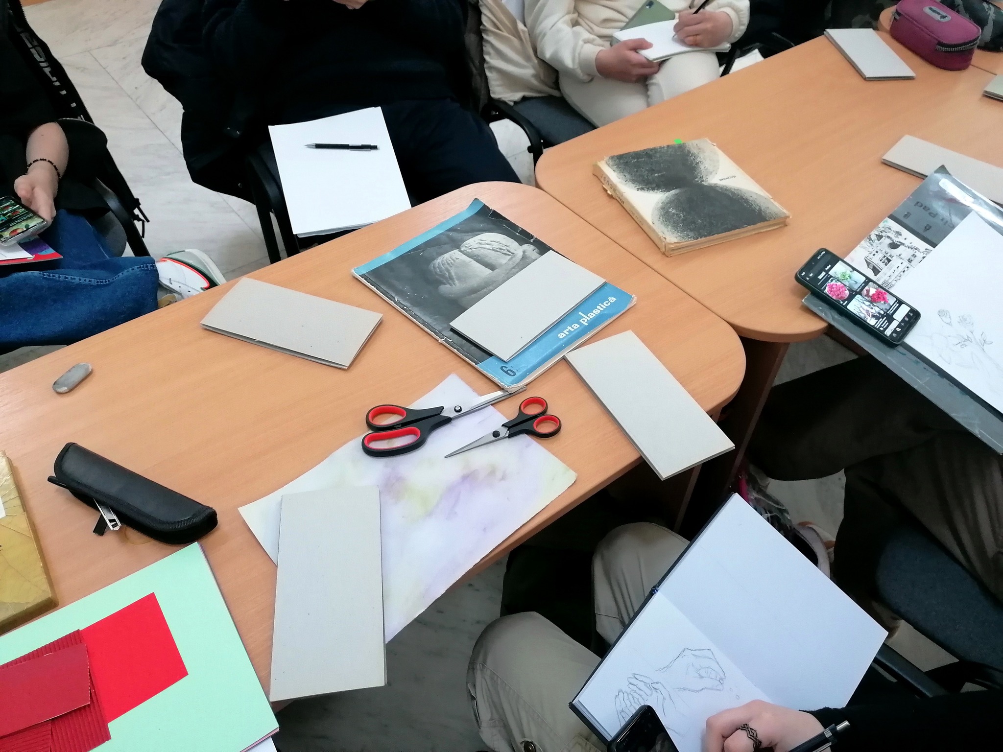 Sub impresia celor văzute și discutate, tinerii artiști au purces la confecționarea unor cărticele-colaj care vor face, curând, obiectul unei mini-expoziții dedicate Începutului Lumii.