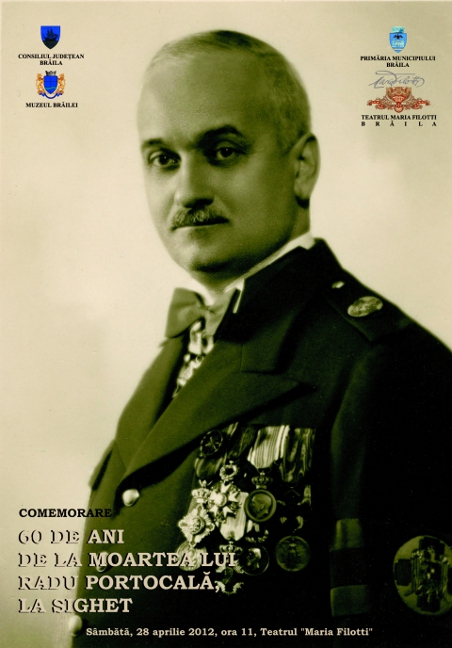 Consiliul Judeţean Brăila şi Muzeul Brăilei, în colaborare cu Primăria Municipiului Brăila şi Teatrul „Maria Fliotti” Brăila, vă invită sâmbătă, 28 aprilie 2012, ora 11.00, în Sala Mare a Teatrului „Maria Filotti”, la comemorarea a 60 de ani de la moartea, la Sighet, a lui Radu Portocală, fost primar al Brăilei.