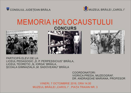 Concurs cu tema „MEMORIA HOLOCAUSTULUI", la sediul Muzeului Brăilei „Carol I”