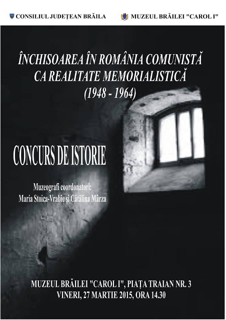 Concurs pentru elevi "ÎNCHISOAREA ÎN ROMÂNIA COMUNISTĂ, CA REALITATE MEMORIALISTICĂ (1948-1964)"