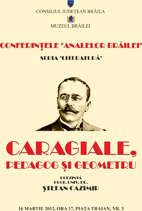 Conferinţele „Analelor Brăilei” – Seria „Literatură”: „CARAGIALE, PEDAGOG ŞI GEOMETRU”, susţinută de prof. univ. dr. Ştefan Cazimir