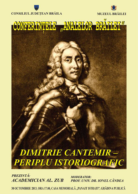 Cu acest prilej, vă invităm miercuri, 30 octombrie 2013, ora 17.00, la Casa Memorială „Panait Istrati” din Grădina Publică, la un periplu istoriografic, în cadrul Conferințelor „Analelor Brăilei”, susținut de academicianul Alexandru Zub.