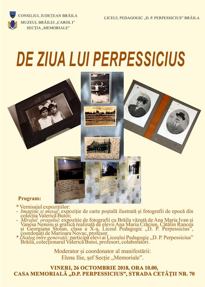 „DE ZIUA LUI PERPESSICIUS". Întâlnire cultural-artistică dedicată împlinirii a 127 de ani de la nașterea marelui critic și istoric literar. Vernisajul expozițiilor temporare „IMAGINE ȘI MESAJ" și „MIRAJUL ORAȘULUI", la Muzeul Brăilei „Carol I” - Casa Memorială „Dumitru Panaitescu Perpessicius”