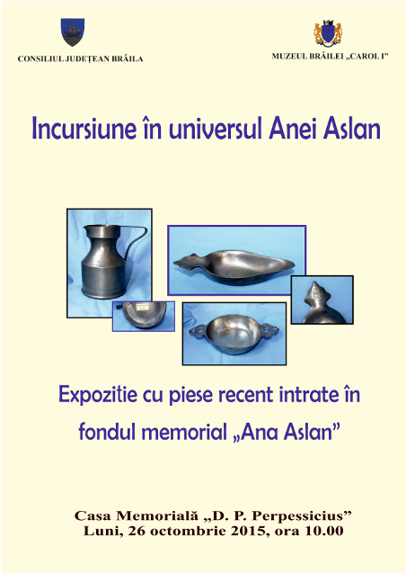 Începând de astăzi, brăilenii pot admira, în spaţiul destinat expoziţiilor temporare, câteva dintre piesele ce au aparţinut unei alte mari personalităţi brăilene: Ana Aslan!