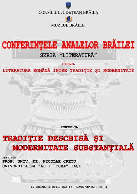 Muzeul Brăilei va invită la deschiderea Conferinţelor Analelor Brăilei, seria "Literatură", miercuri, 16 februarie 2011, ora 17.00, la sediul din Piaţa Traian, nr. 3.