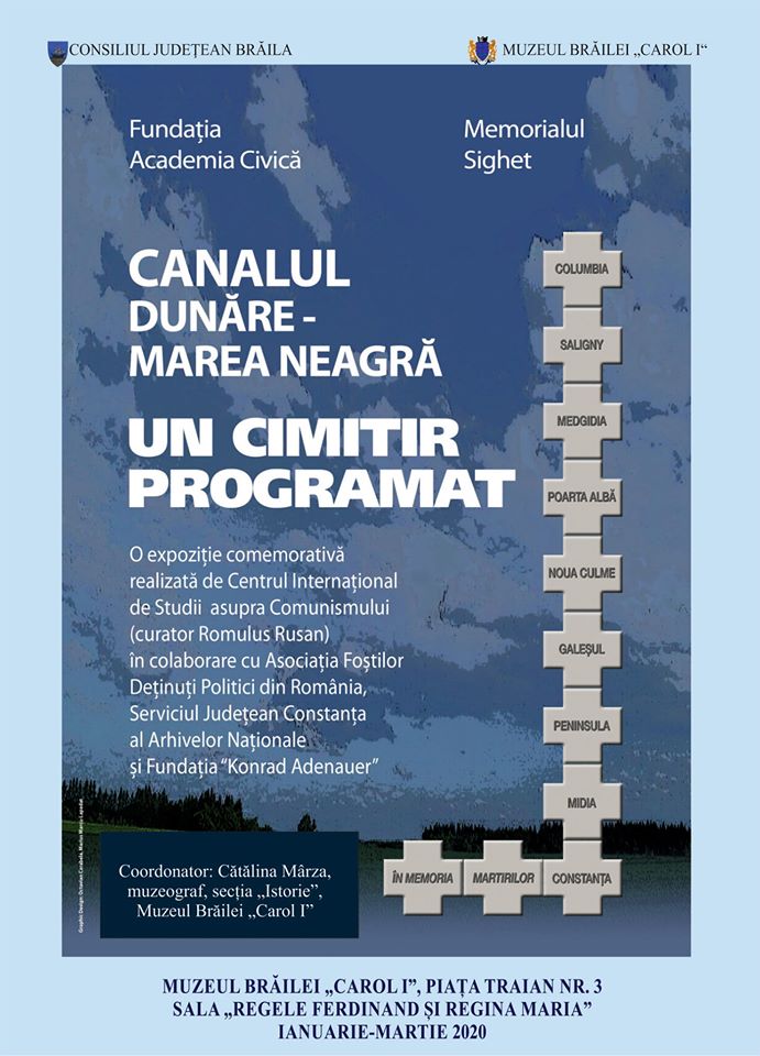 Deschiderea expoziției „CANALUL DUNĂRE – MAREA NEAGRĂ. UN CIMITIR PROGRAMAT” realizată de Centrul Internaţional de Studii asupra Comunismului în colaborare cu Asociaţia Foştilor Deţinuţi Politici din România, Serviciul Judeţean Constanţa al Arhivelor Naţionale şi Fundaţia „Konrad Adenauer”– în cadrul manifestărilor dedicate Zilei Municipiului Brăila – 652 de ani de atestare documentară (20 ianuarie 1368 – 20 ianuarie 2020), la sediul Muzeului Brăilei „Carol I”, sala „Regele Ferdinand și Regina Maria”