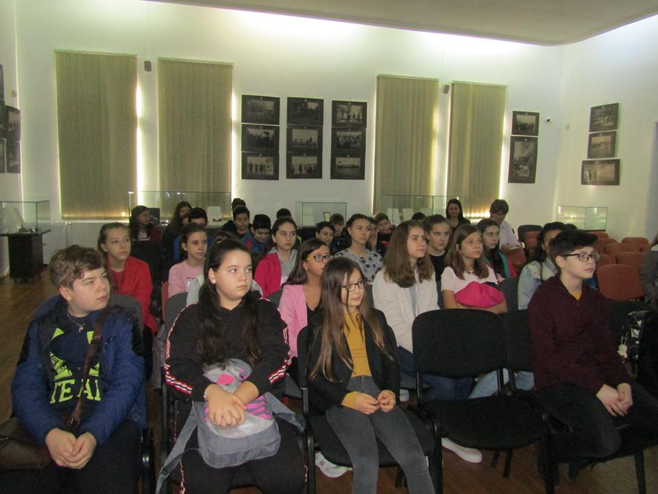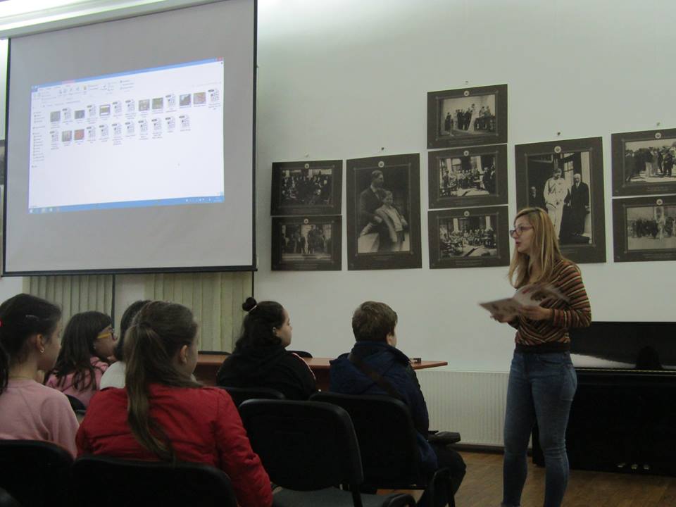 DESPRE CENTENAR ŞI MAREA UNIRE, PE ÎNŢELESUL COPIILOR, la sediul Muzeului Brăilei „Carol I". Grup de la Şcoala Gimnazială „Alexandru Ioan Cuza" Brăila