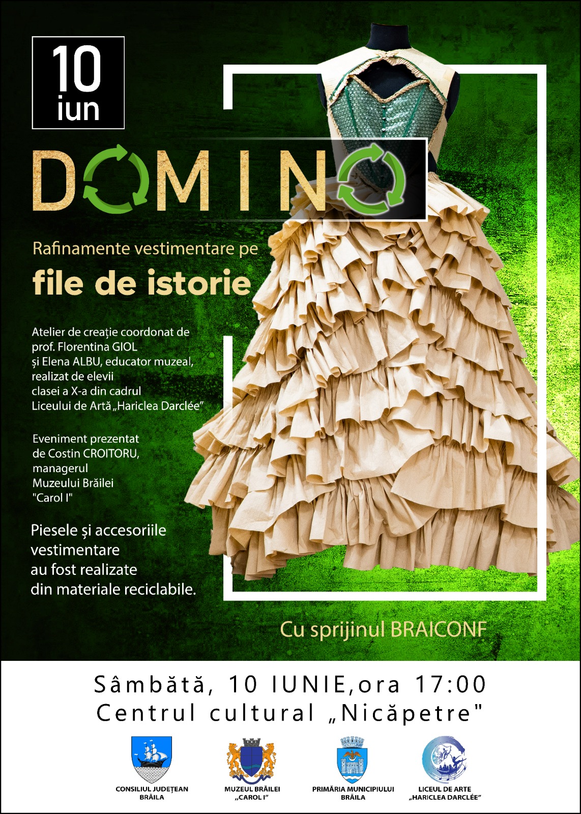 „DOMINO. Rafinamente vestimentare pe file de istorie” - sâmbătă, 10 iunie 2023, ora 17.00, la Muzeul Brăilei „Carol I” - Centrul Cultural „Nicăpetre” (str. Belvedere 1).