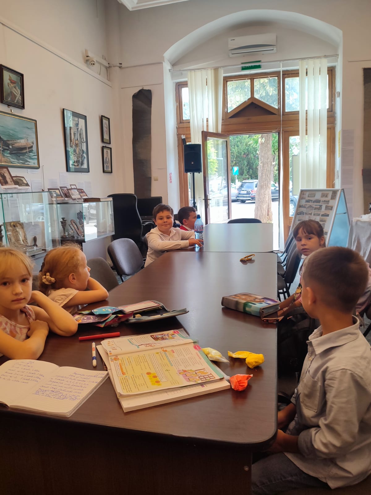Pentru cursanții noi, Camelia Hristian, șef Serviciul Relații cu Publicul a prezentat expoziția temporară deschisă cu ocazia Zilei Naționale a Greciei: OBIECTE din sec. XIX de la Biserica Buna Vestire „Greacă” Brăila și din scrinul cu amintiri de la familii membre ale Comunității Elene Brăila: Florentina Cristina Mușat, Beatrice Dobrescu, Mihai Feraru, Veronica Macri, Jana Andreescu, Elena Salomeea Kaloxilos Moraru, Marilena Ioanid | ICOANE, PICTURĂ, TAPISERIE semnate de artiştii plastici (din Brăila, Brașov, București, Galați, Tulcea): Jana Andreescu, Gheorghe Andreescu, Marilena Ioanid, Cristina Ionescu Berechet, Irina Ionescu Berechet, Elena Salomeea Kaloxilos Moraru, Mioara Mitu, Gheorghe Mosorescu, Elena Orbocea, Iulia Pastorcici, Dennis Teodorescu, Marius Teodorescu, Traian Tsamuris | Fotoexpoziție „CĂLĂTORIE PE DUNĂRE ȘI ÎN DIASPORA GREACĂ DIN ORAȘELE DUNĂRENE, DE LA IZVOARE LA VĂRSARE” și Mini-expoziție cu lucrări de pictură semnate de Nela Constantinescu, membră a Asociației „Hristo Botev” a Bulgarilor din Brăila.