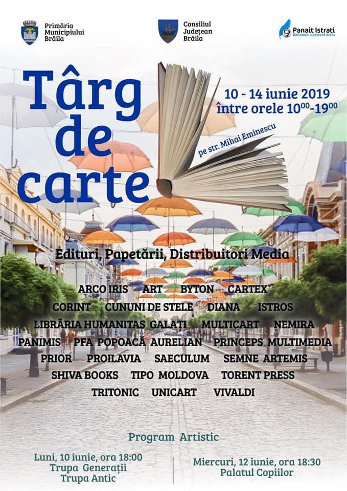 Editura „Istros” a Muzeului Brăilei „Carol I” va participa la Târg de Carte, ediţia a doua – în perioada 10-14 iunie 2019, pe Strada Mihai Eminescu din Brăila.