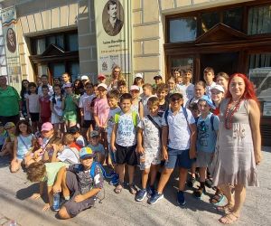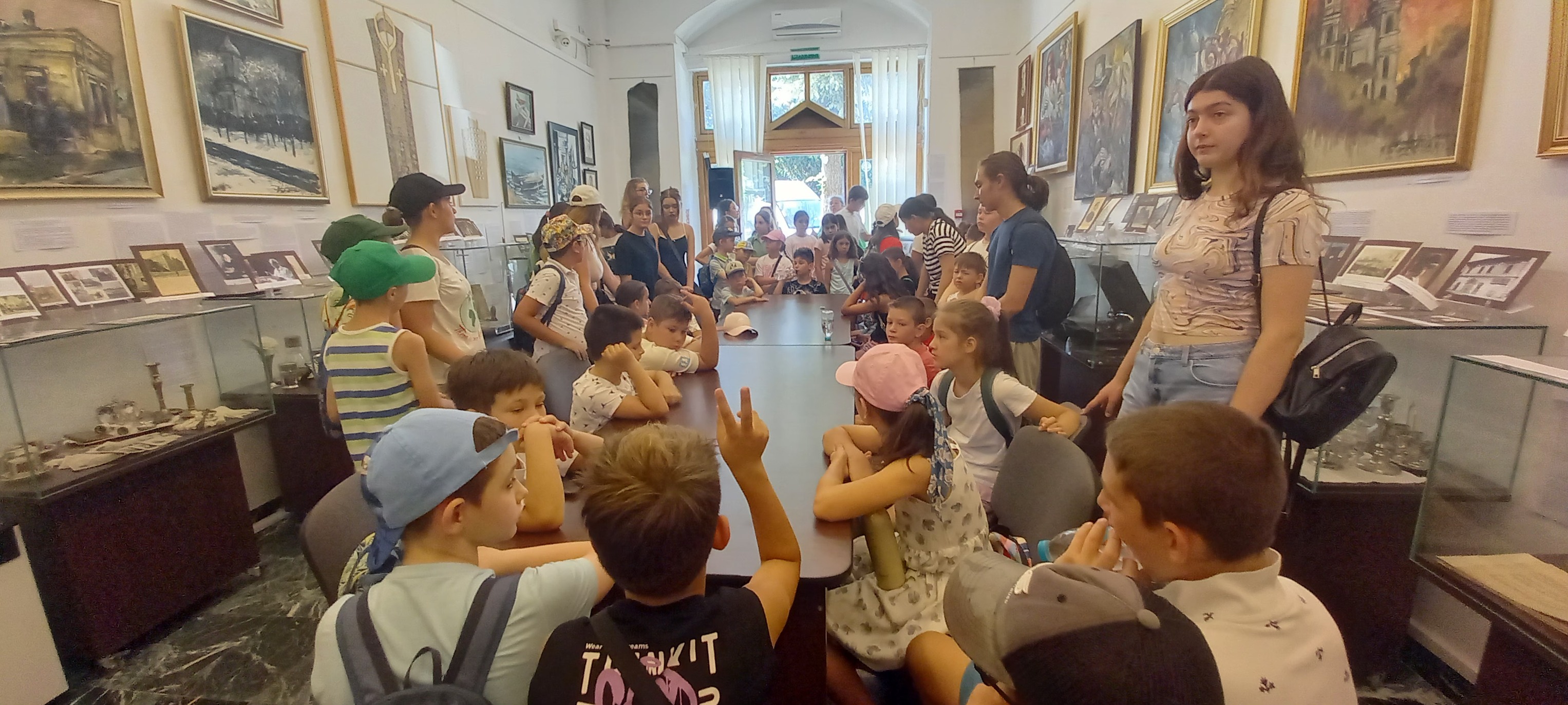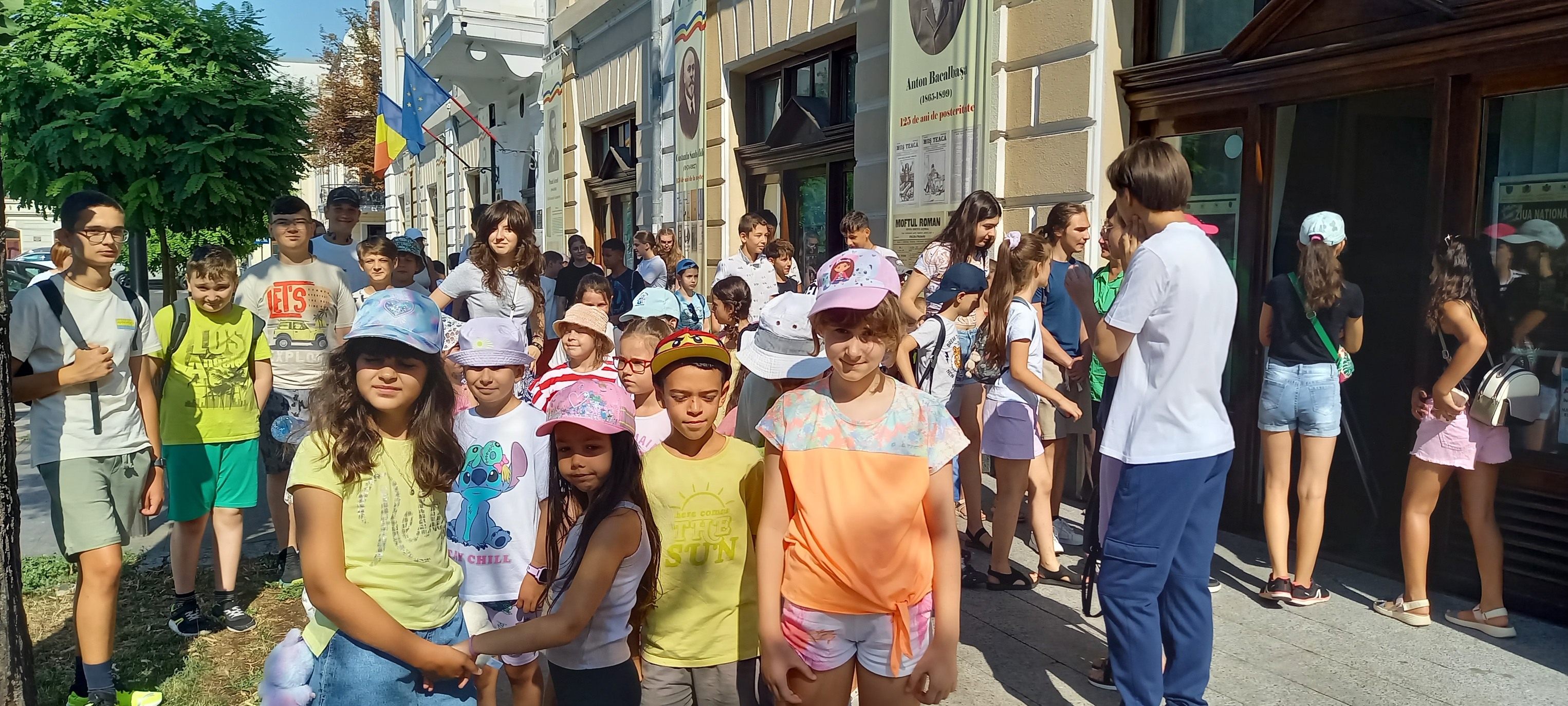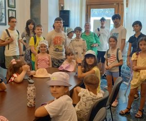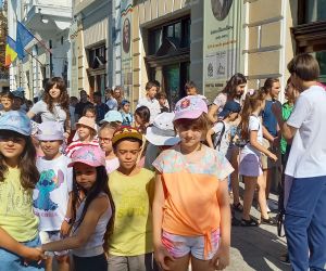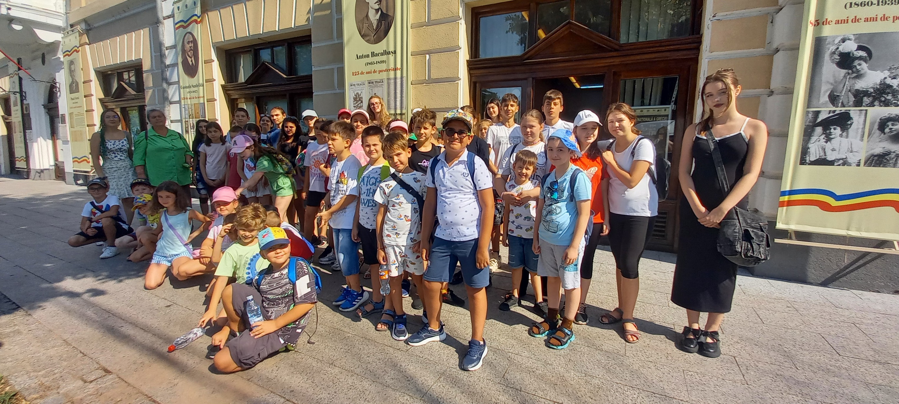 Vizitatori (2 grupuri) - participanții la atelierul „Vacanța în ecobază”, coordonat de prof. Cornelia Miler, la Muzeul Brăilei „Carol I” - Centrul Diversității Culturale.