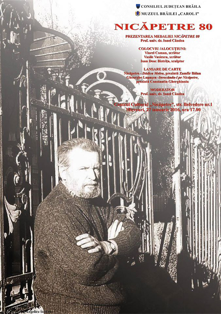 Evenimentul dedicat împlinirii a 80 de ani de la naşterea marelui sculptor român, Nicăpetre (Brăiliţa, 1936 – Toronto, 2008) a avut loc miercuri, 27 ianuarie 2016, ora 17, la Centrul Cultural “Nicăpetre”, din strada Belvedere nr. 1.