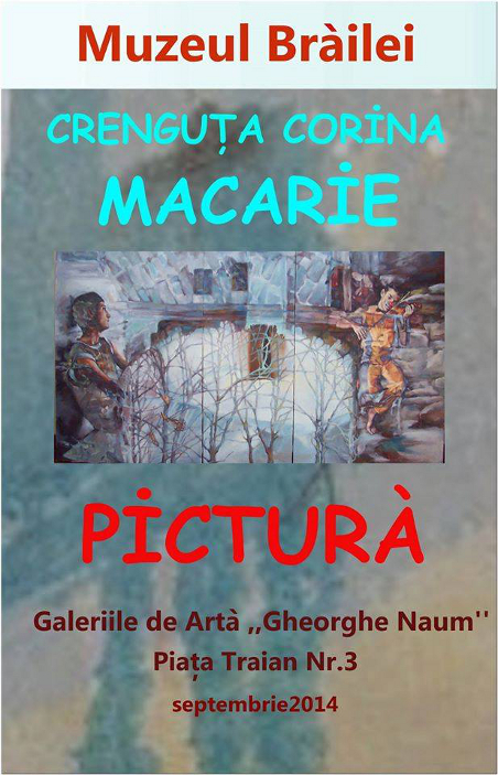 Vineri, 19 septembrie 2014 ora 17, la Galeria "Gheorghe Naum" a Muzeului Brăilei va avea loc o întâlnire cu Crenguţa Corina MACARIE, în cadrul unui dialog despre artă, artist şi public, la care aşteptăm să ne onoraţi cu prezenţa.