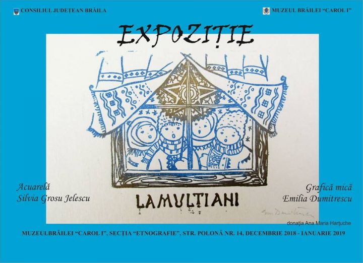 Expoziție „FELICITĂRI DIN ALTE VREMURI". Acuarelă - Silvia Grosu Jelescu și Grafică mică - Emilia Dumitrescu. Donația Ana Maria Harțuche, la Muzeul Brăilei „Carol I” - Secția Etnografie