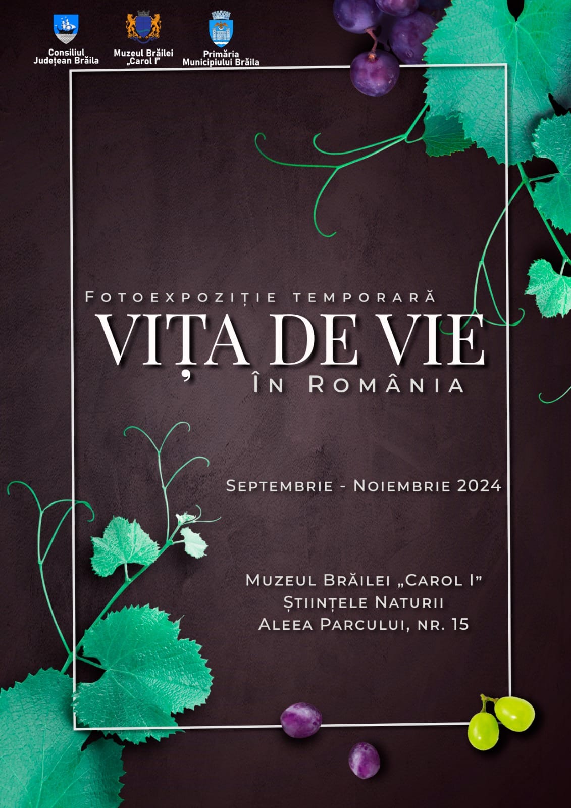 În perioada septembrie - noiembrie vă invităm la sediul Științelor Naturii, Aleea Parcului, nr. 15, Brăila (Parcul Monument), pentru a vizita fotoexpoziția documentară „Vița de vie în România”.