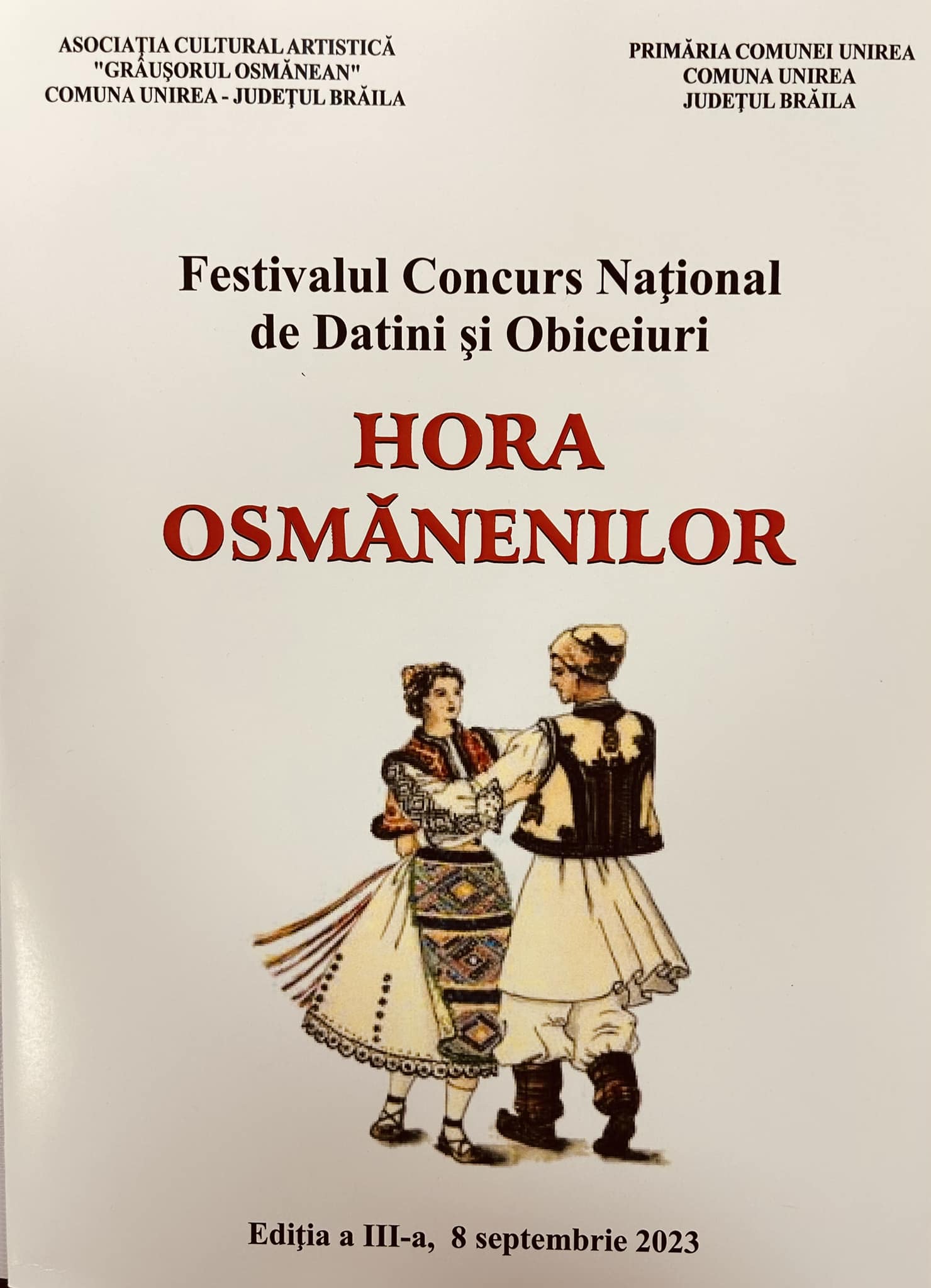 „Începe Festivalul Concurs Național de Datini și Obiceiuri „Hora Osmănenilor” la Unirea, județul Brăila! Felicitări organizatorilor, succes participanților!”