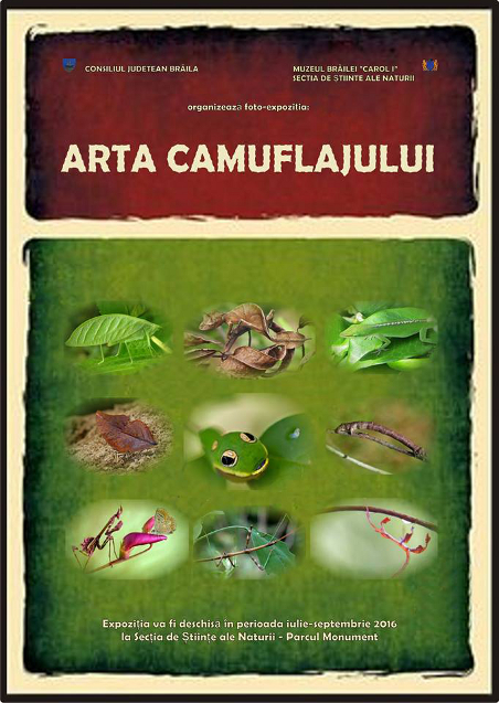 În perioada iulie-septembrie 2016, la Muzeul Brăilei ”Carol I” - Secţia de Ştiinţe ale Naturii din Parcul Monument, va fi deschisă foto-expoziţia intitulată „Arta camuflajului”.
