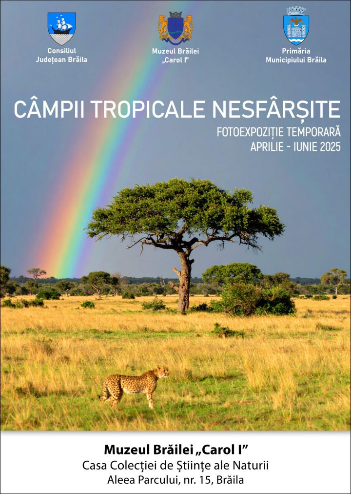 În perioada aprilie - iunie 2025 vă invităm la Muzeul Brăilei „Carol I” - sediul Colecției de Științele Naturii din Aleea Parcului, nr. 15, Brăila, pentru a vizita fotoexpoziția documentară „Câmpii tropicale nesfârșite”.
