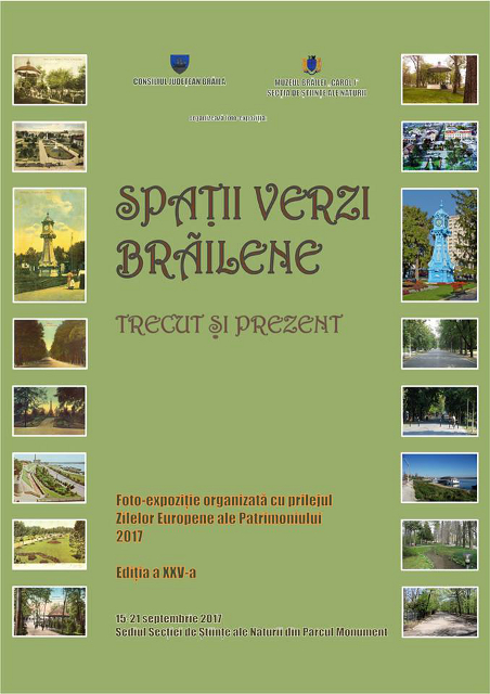 Fotoexpoziția „Spațiile verzi brăilene – trecut și prezent”, organizată cu ocazia Zilelor Europene ale Patrimoniului poate fi vizitată în perioada 15-21 septembrie 2017, la Muzeul Brăilei „Carol I” - Secția Științele Naturii.