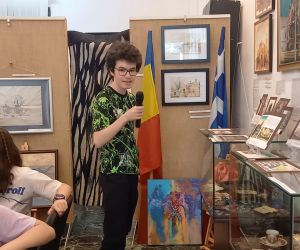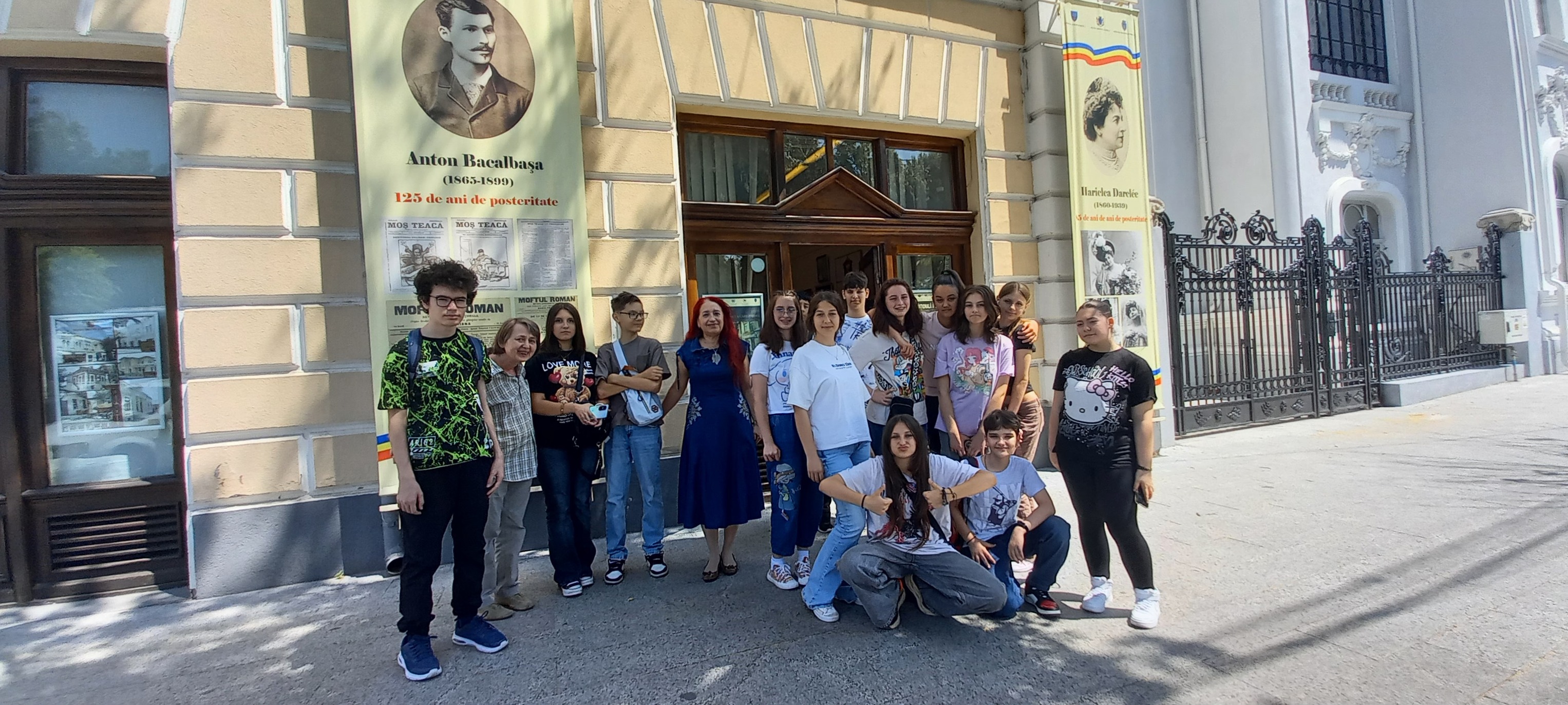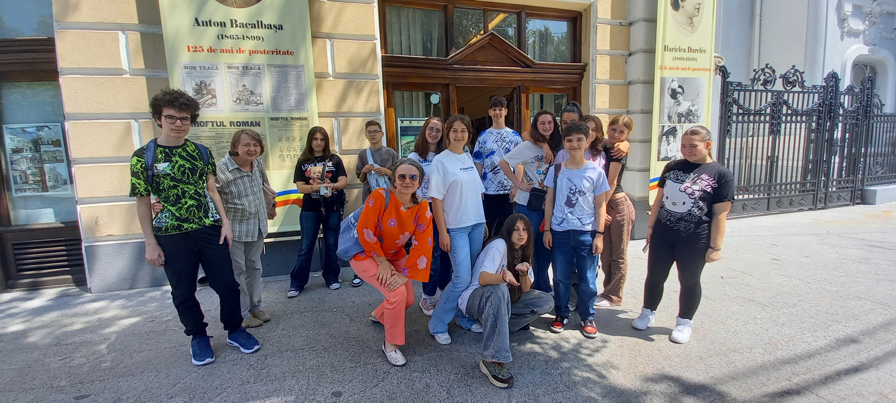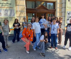 Grup de elevi de la Liceul de Arte „Hariclea Darclée”, însoțit de artiștii plastici prof. Marilena Ioanid și prof. Catrinel Pătrașcu.