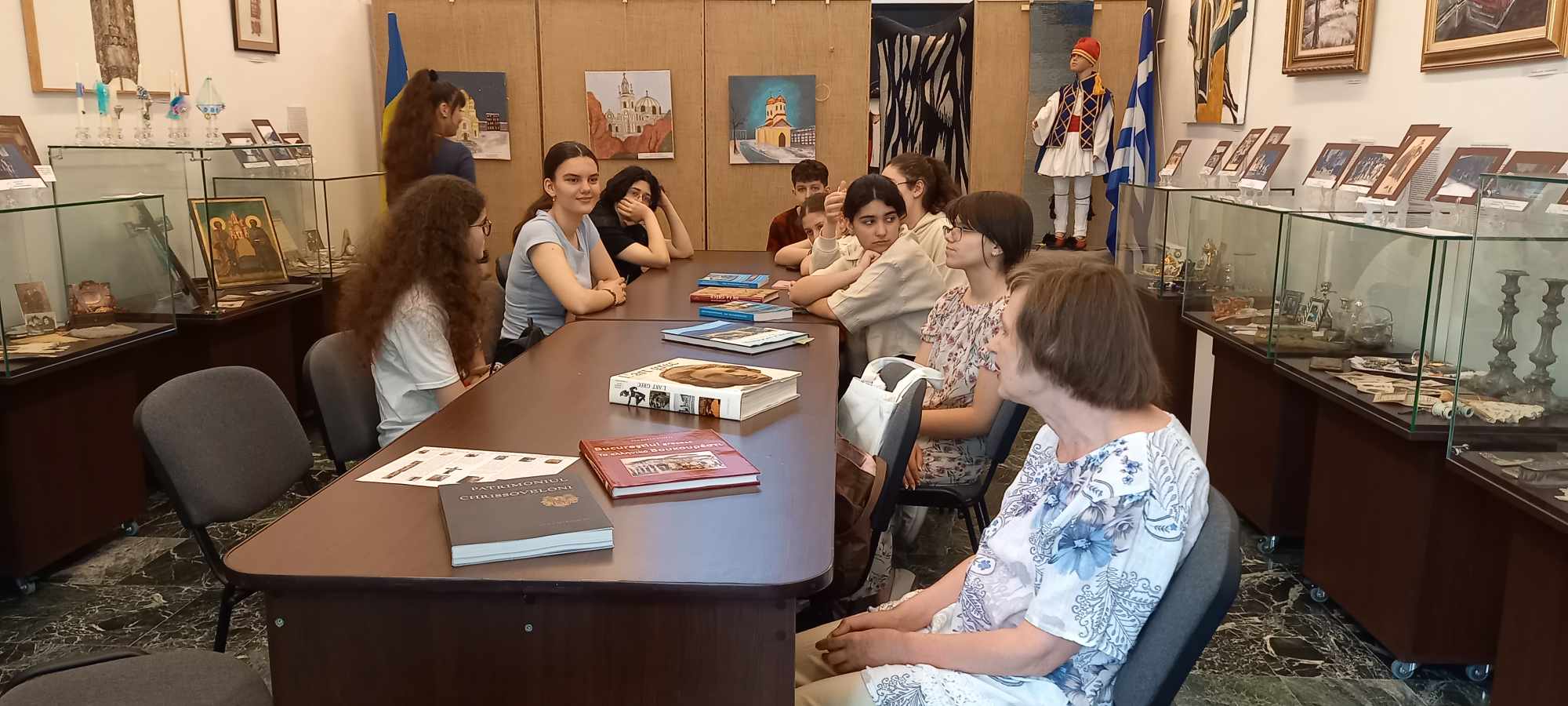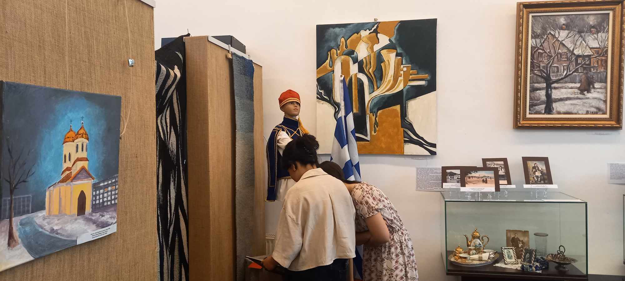 Camelia Hristian, șef Serviciul Relații Publice a prezentat expozițiile temporare OBIECTE din sec. XIX de la Biserica Buna Vestire „Greacă” Brăila și din scrinul cu amintiri de la familii membre ale Comunității Elene Brăila: Beatrice Dobrescu (Ispir), Florentina Mușat, Elena Salomeea Kaloxilos Moraru, Jana Andreescu, Marilena Ioanid | LUCRĂRI DE ARTĂ semnate de artiştii plastici (din Brăila, Galați, Brașov și București): Jana Andreescu, Gheorghe Andreescu, Irina Ariton, Marilena Ioanid, Irina Ionescu Berechet, Elena Salomeea Kaloxilos Moraru, Gheorghe Mosorescu, Iulia Pastorcici, Dennis Teodorescu, Marius Teodorescu, Traian Tsamuris | FOTOEXPOZIȚIE „INCURSIUNE ÎN VESTIMENTAȚIA GREACĂ, ÎN SEC. XVI - XX”. Documentare: Camelia Hristian - deschisă cu ocazia Zilei Naționale a Greciei | „Felicitări din perioada 1912 - 1946, pentru Sărbătorile Pascale”. Colecția Florentina Cristina Mușat | „Lumânări pentru Noaptea de Înviere / Πασχαλινές Λαμπάδες” decorate la Cercul de Pictură al Comunității Elene, coordonat de prof. Elena Salomeea Kaloxilos Moraru, artist plastic | Lucrări pe pânză realizate de elevi în Proiectul educațional județean „Peisajul brăilean în culoare, credință și lectură”.
