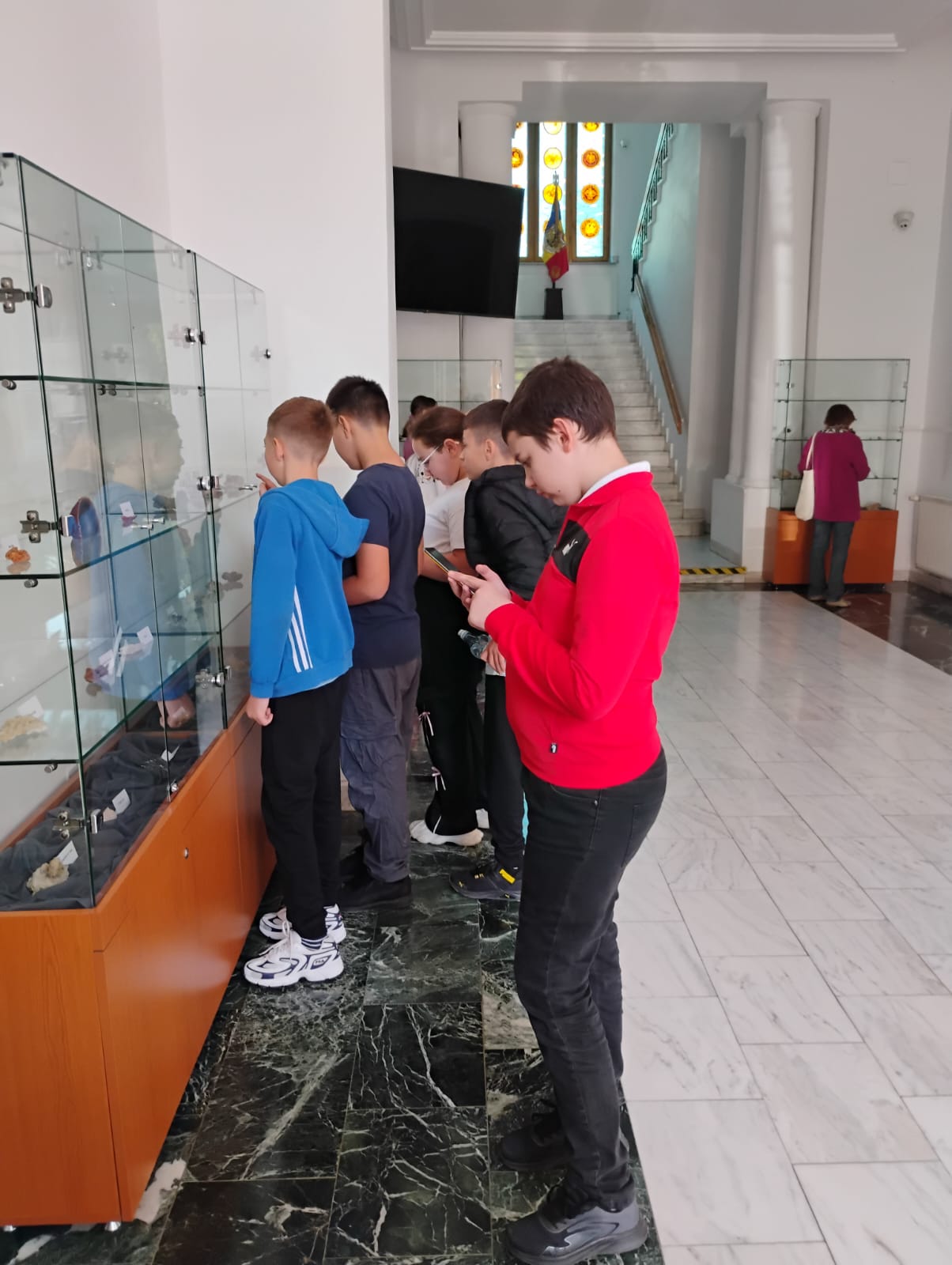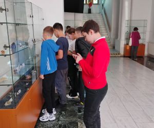 VIZITATORI în expoziția temporară „Memoria pământului” – cu piese de paleontologie și mineralogie din colecția Muzeului Geologic Național București, la sediul Muzeului Brăilei „Carol I”