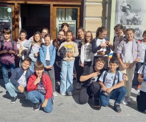 Grup de la Școala Gimnazială „Fănuș Neagu” Brăila, însoțit de prof. înv. primar Ioana Popescu.