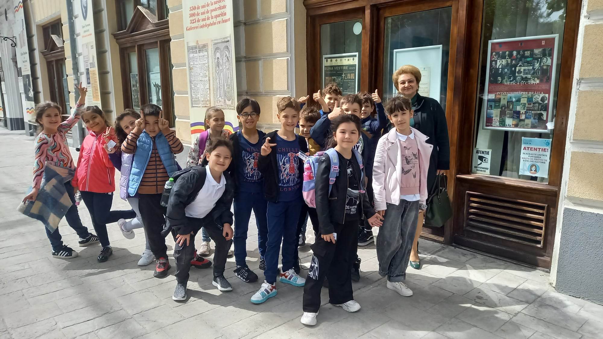 Grup de la Școala Gimnazială „Ion Creangă”, însoțit de prof. Mihaela Teșileanu.