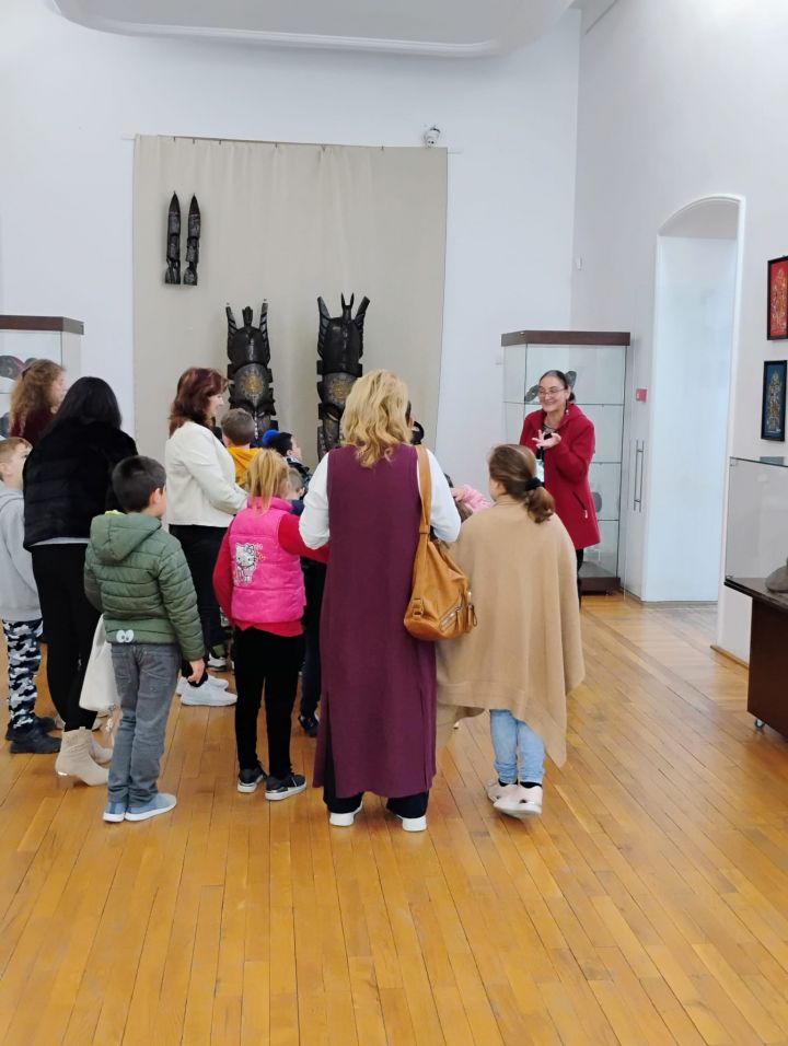 Grupul de la Școala Gimnazială „Nikos Kazantzakis” - însoțit de prof. înv. primar Mariana Preda, prof. înv. primar Dorina Raicu și prof. Daniela Surdu, director - a vizitat expoziția permanantă de Istorie Modernă și expoziția temporară de artă africană „Expresii exotice".